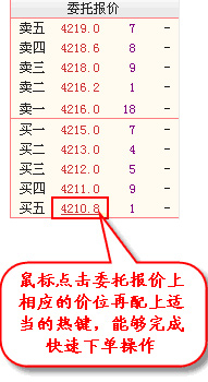 用户在界面可以在合约行情图、委托报价窗口、合约表窗口等地方使用这些创新的快捷操作,迅速完成闪电下单的操作: